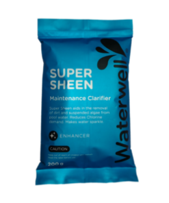 WATERWELL SUPER SHEEN is a pool water clarifier designed to enhance the sparkle of your pool water. These convenient sachets work effectively to aid in the removal of dirt and suspended algae, contributing to a clearer and more inviting pool environment.